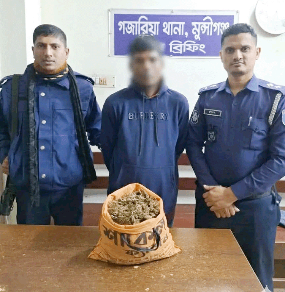 নিজস্ব প্রতিবেদক: মুন্সীগঞ্জের গজারিয়ায় ১ কেজি ৫০০ গ্রাম গাঁজাসহ দুইজনকে আটক করেছে গজারিয়া থানা পুলিশ। গতকাল বুধবার বিকাল আনুমানিক ৪টা ১০ মিনিটে গজারিয়া থানার পুলিশ পরিদর্শক (তদন্ত) মোঃ সাব্বির হোসেনের নেতৃত্বে এসআই (নিঃ) রুবেল শিকদার ও সঙ্গীয় ফোর্স গজারিয়া থানাধীন বাউশিয়া ইউনিয়নের মধ্য বাউশিয়া এলাকায় অভিযান পরিচালনা করেন। অভিযানকালে মধ্য বাউশিয়া এলাকার রাজু মিয়ার বসতঘরের সামনে থেকে ১ কেজি ৫০০ গ্রাম গাঁজাসহ আলম দেওয়ান (৩৫), পিতা- মৃত কাদের দেওয়ান, সাং- পোড়াচক বাউশিয়া এবং রাজু মিয়া (৩০), পিতা- আব্দুল বারেক, সাং- মধ্য বাউশিয়া, থানা- গজারিয়া, জেলা- মুন্সীগঞ্জ- এই দুইজনকে আটক করা হয়।