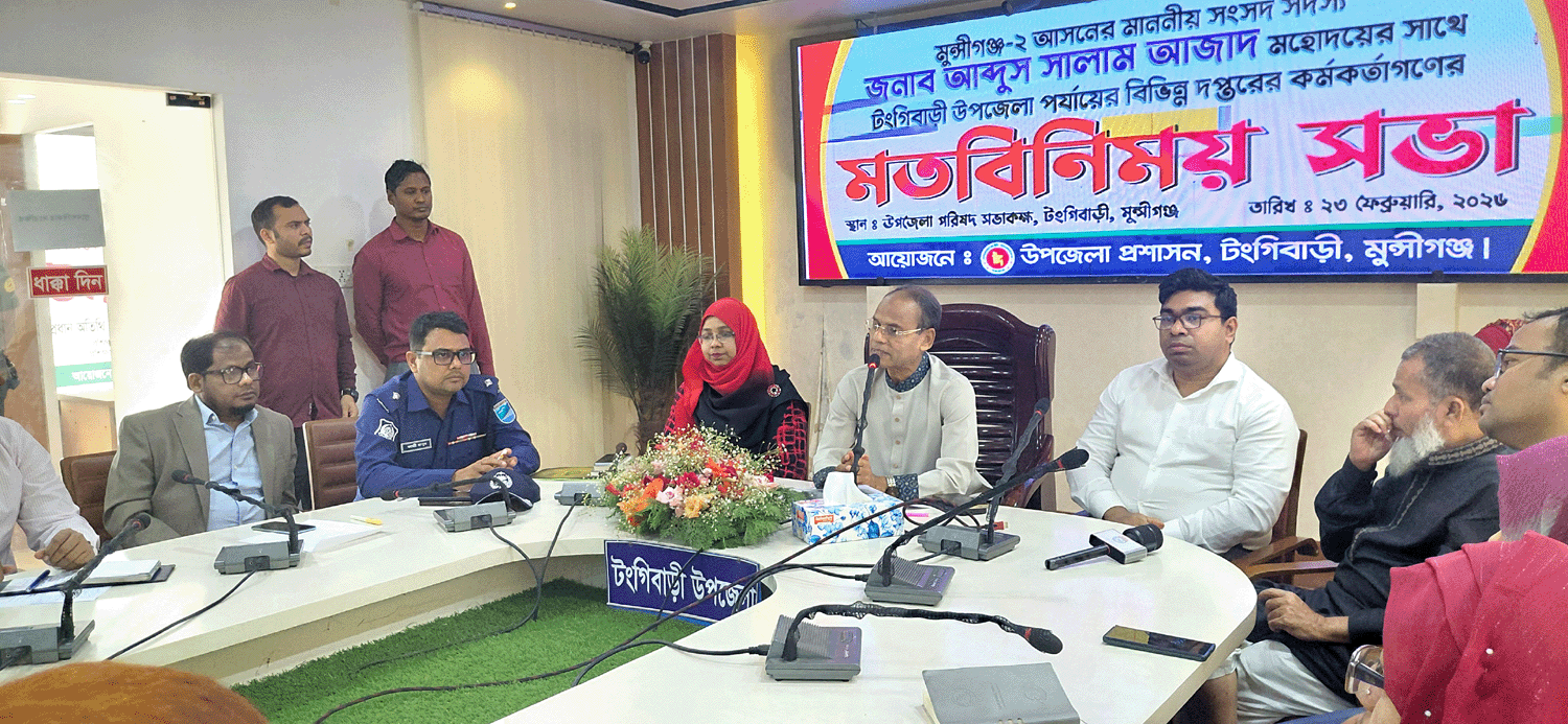 টঙ্গীবাড়ীতে নব-নির্বাচিত এমপি’র সাথে বিভিন্ন দপ্তরের কর্মকর্তাগণের মতবিনিময় সভা অনুষ্ঠিত