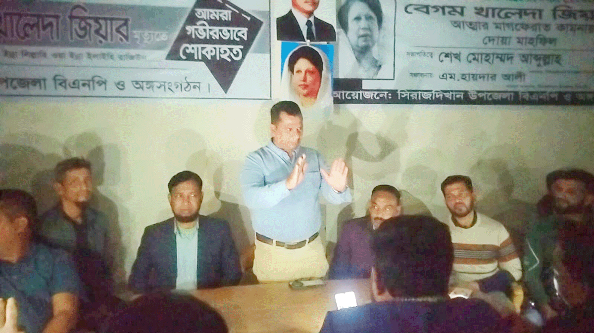 গতকাল শনিবার সন্ধ্যা ৭টায় সিরাজদিখান উপজেলা বিএনপির কার্যালয়ে এ সভা অনুষ্ঠিত হয়। সভায় প্রধান অতিথি হিসেবে বক্তব্য রাখেন কেন্দ্রীয় যুবদলের সাবেক সহ-সাংগঠনিক সম্পাদক ও মুন্সীগঞ্জ-১ আসনে যুবদলের নির্বাচনী দায়িত্বপ্রাপ্ত নেতা সোহেল আহমেদ রানা।