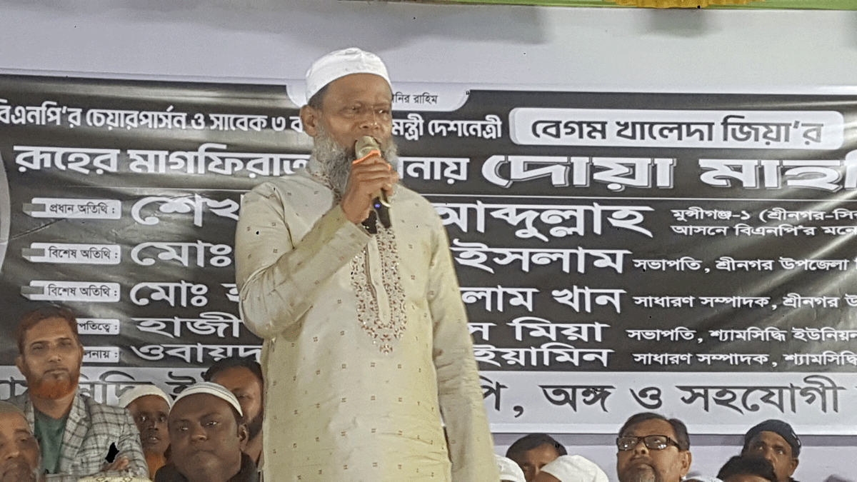 শ্রীনগরে বেগম খালেদা জিয়ার রুহের মাগফেরাত কামনার দোয়া মাহফিল